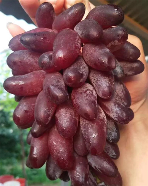 2、紹星3號(hào):鮮紅色,粒重8-12克,果粒平均長(zhǎng)度達(dá)4.5厘米(目前葡萄品種顆粒最長(zhǎng)),圓柱形狀,果肉脆爽,豐產(chǎn)、耐儲(chǔ)運(yùn)。7月中旬-8月底;