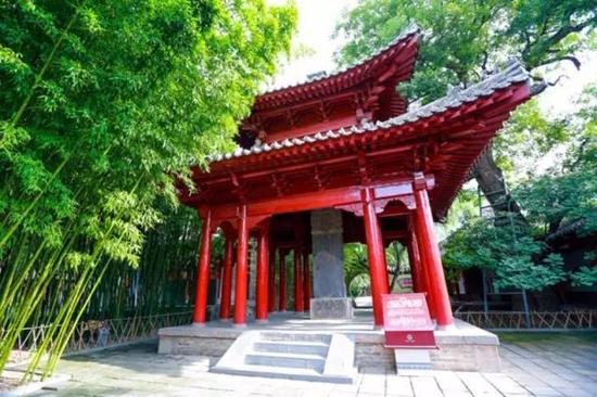 上山臺階的兩邊遍植修竹,這里這竹子長得特別密,枝葉繁茂,清風(fēng)一吹,瑟瑟作響。院子里也是古樹參天,翠竹片片,配上古色古香的房屋、門柱,更顯雅致。
