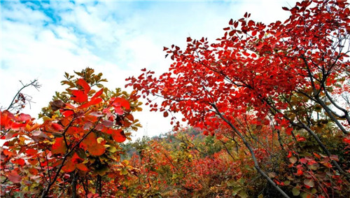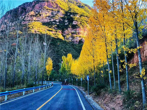 自然山林紅得深深淺淺,黃的徹徹底底,筆直俊秀的一大片,誘人的紅、亮眼的黃蔓延開來,整個畫面對比電影里的仙境也不為過。