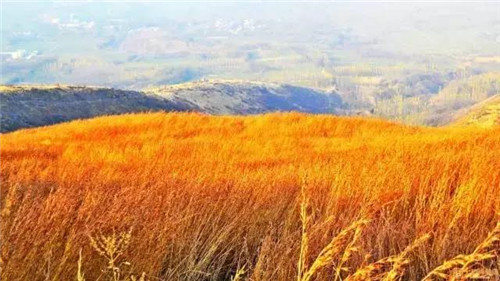 在偃師市緱氏鎮(zhèn)劉莊村南青羅山北麓藏著一處萬畝高山草甸,草原秋天時(shí)色染黃棕,如駝毛,另有一番滋味,驢友們親切稱呼為“黃金大草原”。黃金大草原觀賞期從每年的9月底10月初開始一直可延續(xù)到來年的2月份。初秋的黃杯草綠中透黃,中秋的黃杯草黃中透紅,深秋的黃杯草紅中透黃,煞是好看。