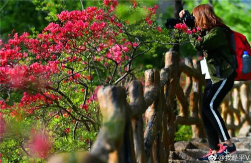作為目前河南省最大規(guī)模的野生杜鵑花觀賞區(qū),每年五月西泰山中十萬頃野生杜鵑競相開放,漫山紅遍,9公里長的杜鵑花長廊若云霞般絢麗燦爛,與青山綠樹交相輝映,勾勒成一幅醉人畫卷,令人沉醉。