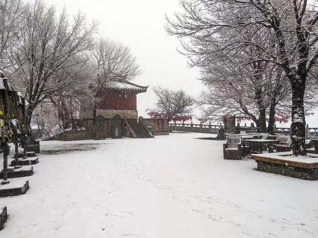 王屋山的初雪也未等到立冬,便已飄落。大片雪花紛紛揚揚落下,覆蓋了天壇極頂。