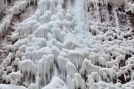霜濃凝廣隰,冰厚結(jié)清流……林州太行大峽谷桃花谷景區(qū)內(nèi)宛若童話世界,巨大的冰掛懸在懸崖之上,就像山川穿上了銀色鎧甲,而壯觀的冰瀑下面還隱約可聞潺潺流水,更像一些音符奏響在白色的帷幕之后。