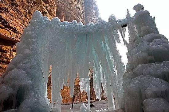 太行大峽谷景區(qū)去年冬天推出以賞冰掛為主題的冬季旅游項(xiàng)目,命名為“冰之語”,充分利用南太行奇絕的山勢和飛瀑流泉,有意識地將一些自然形成的冰掛、冰瀑加以改造,形成了這獨(dú)特的景觀。