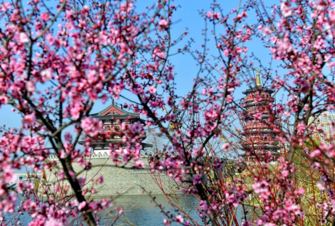 除了近距離賞花,您還可站在隋唐洛陽(yáng)城遺址南城墻上,俯瞰春日美景。古色古香的城墻與不遠(yuǎn)處的現(xiàn)代建筑相互映襯,彰顯著古今輝映的洛城風(fēng)貌。
