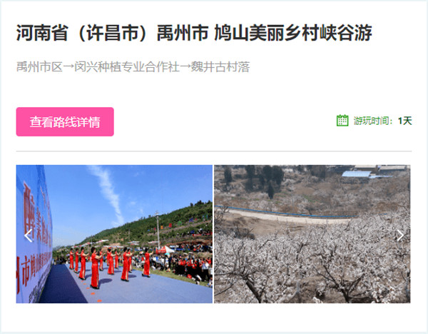 近日,在農(nóng)業(yè)農(nóng)村部鄉(xiāng)村產(chǎn)業(yè)司評(píng)選的2023年中國(guó)美麗鄉(xiāng)村休閑旅游行(春季)精品景點(diǎn)線路推介中,禹州市鳩山美麗鄉(xiāng)村峽谷游位列其中,快來看看鳩山被“相中”的美——