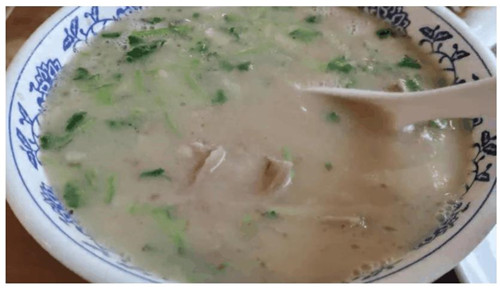 丈地羊肉湯屬熗鍋羊肉湯,以肉鮮湯濃味香而著稱。通過(guò)選取本地優(yōu)質(zhì)小山羊肉,土灶火大鐵鍋熬湯,以牛油、羊油爆炒羊肉,加高湯大火煮開(kāi),撒入由30多味中草藥配制成的“密料兒”,入碗后酌情加蔥花香菜即成。成品比一般羊肉湯要濃,口感醇厚雋永,回味悠長(zhǎng)。一些湯客為了喝碗丈地羊肉湯,驅(qū)車幾十公里而來(lái)。