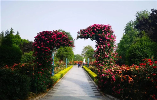 澗河公園月季園4月下旬--5月下旬進入盛花期。主要種植有大花月季、豐花月季、藤本月季、地被月季、微型月季、樹狀月季等。