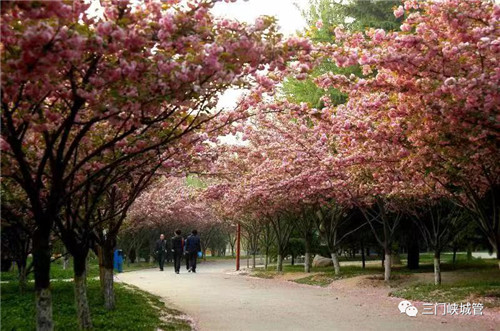 虢國公園共種植櫻花1800余株,有關(guān)山櫻、大島櫻、郁金櫻、松月櫻等20多個品種,每年四月次第開放,主要分布在園區(qū)主環(huán)路兩側(cè),現(xiàn)已成為三門峽市規(guī)模最大、品種最多的櫻花觀賞地。游客可通過北門、南門、東門進入,沿主環(huán)路觀賞。