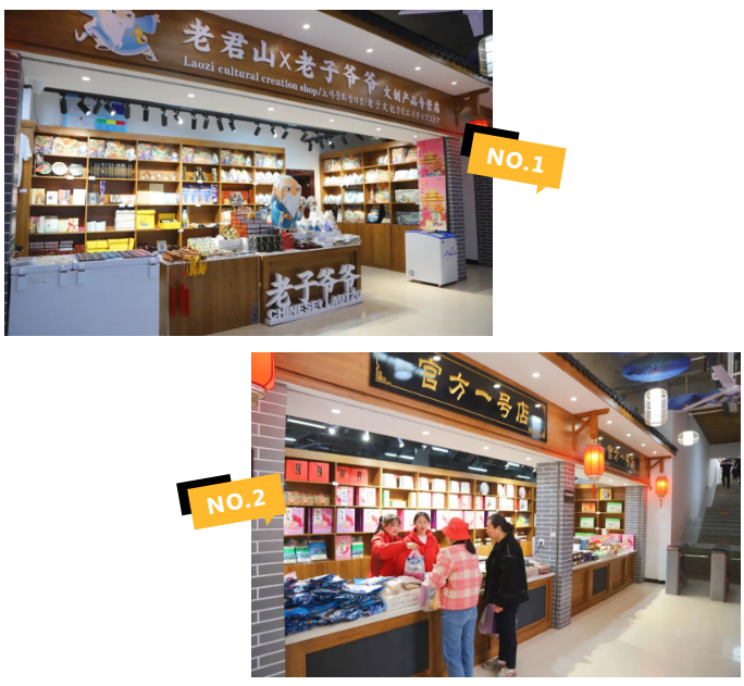 山上山下,有多個官方直營店鋪,主要售賣老君山周邊文創(chuàng)產(chǎn)品,設(shè)計精美,與老君山的景區(qū)文化緊密結(jié)合