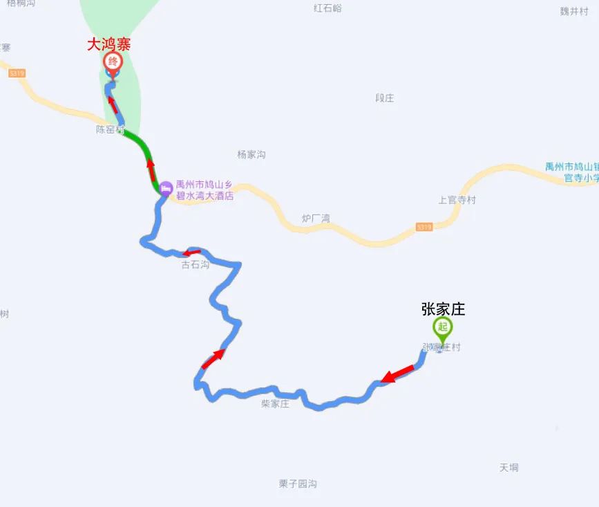 張家莊村途徑 柴家莊 古石溝 到達(dá)大鴻寨