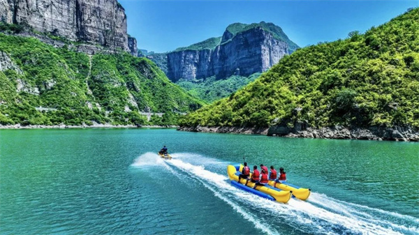 寶泉大峽谷玩水第一站到了 ,這里是"青環(huán)4"明星同款香蕉船打卡點,喜歡刺激的小朋友千萬不要錯過,峽谷沖浪感受浪花拍打~