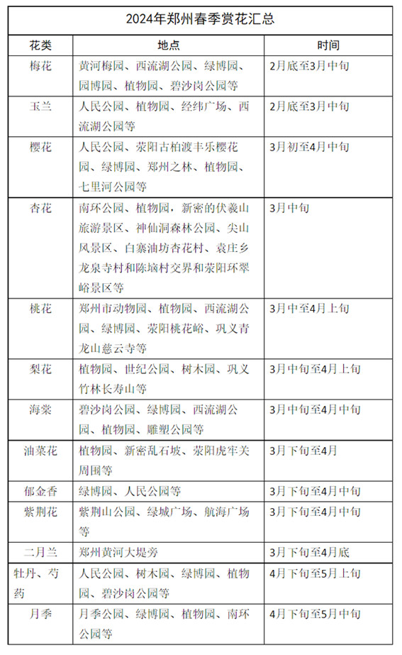 梅花開(kāi)后,櫻花、杏花、桃花、梨花等也將陸續(xù)開(kāi)放。櫻花有早櫻、中櫻、晚櫻之分,花開(kāi)爛漫、如云似雪,整體花期從3月初持續(xù)到4月中旬,鄭州主要賞櫻花地點(diǎn)有人民公園、滎陽(yáng)古柏渡豐樂(lè)櫻花園、綠博園、鄭州之林、植物園、七里河公園等。