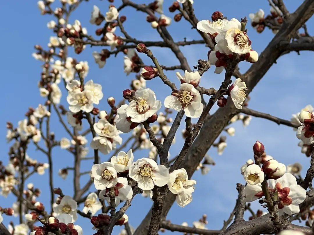 在市區(qū)諸多公園內(nèi),蠟梅香氣還未散盡,綠萼梅等梅花已暗香陣陣,沁人心脾。