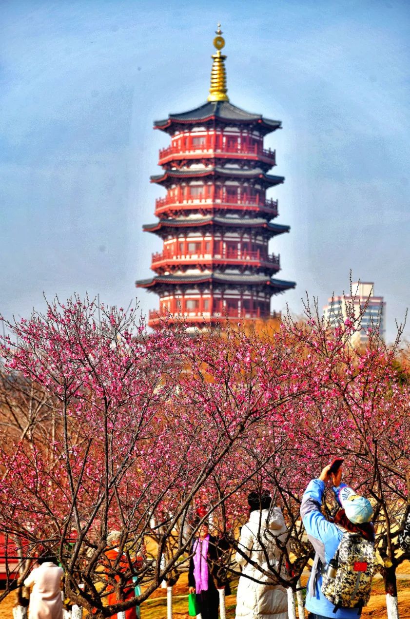 八九雁來,春暖花開。前段時間洛城降雪,多地梅花迎雪綻放,吸引市民踏雪賞梅。最近,朱櫻塔東邊的梅花開了,暗香浮動,令人心曠神怡。梅林映襯著朱櫻塔,吸引眾多市民前去賞花拍照。