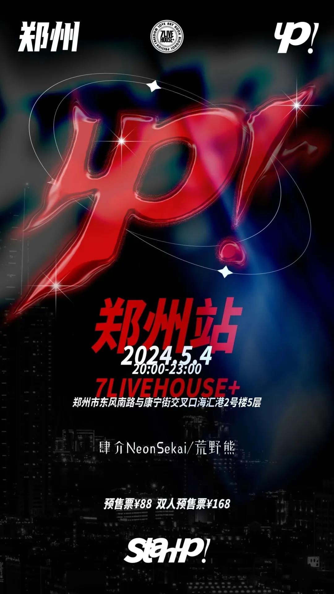 活動地點(diǎn):7LIVEHOUSE+(鄭州市東風(fēng)南路與康寧街交叉口海匯港2號樓5層)