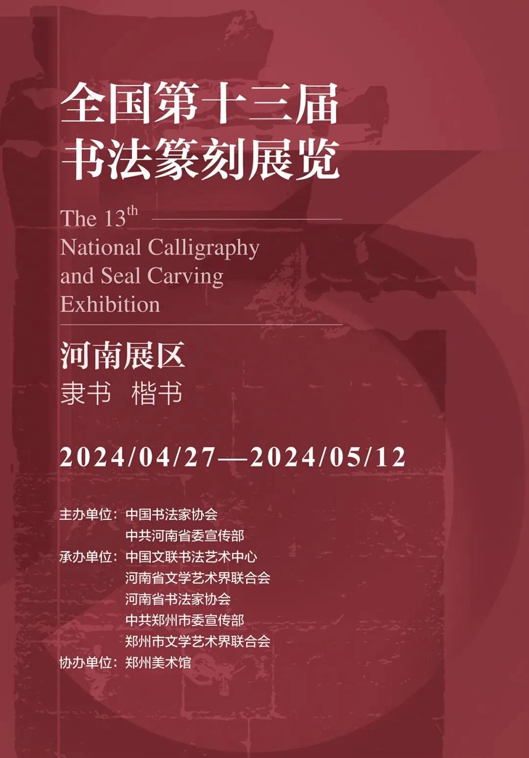 展覽名稱:全國第十三屆書法篆刻展覽(河南展區(qū))