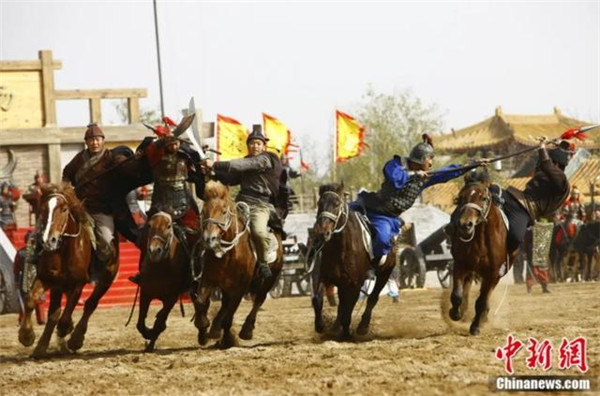 清明上河園內(nèi)的演出節(jié)目《岳飛槍挑小梁王》。開封市委宣傳部供圖