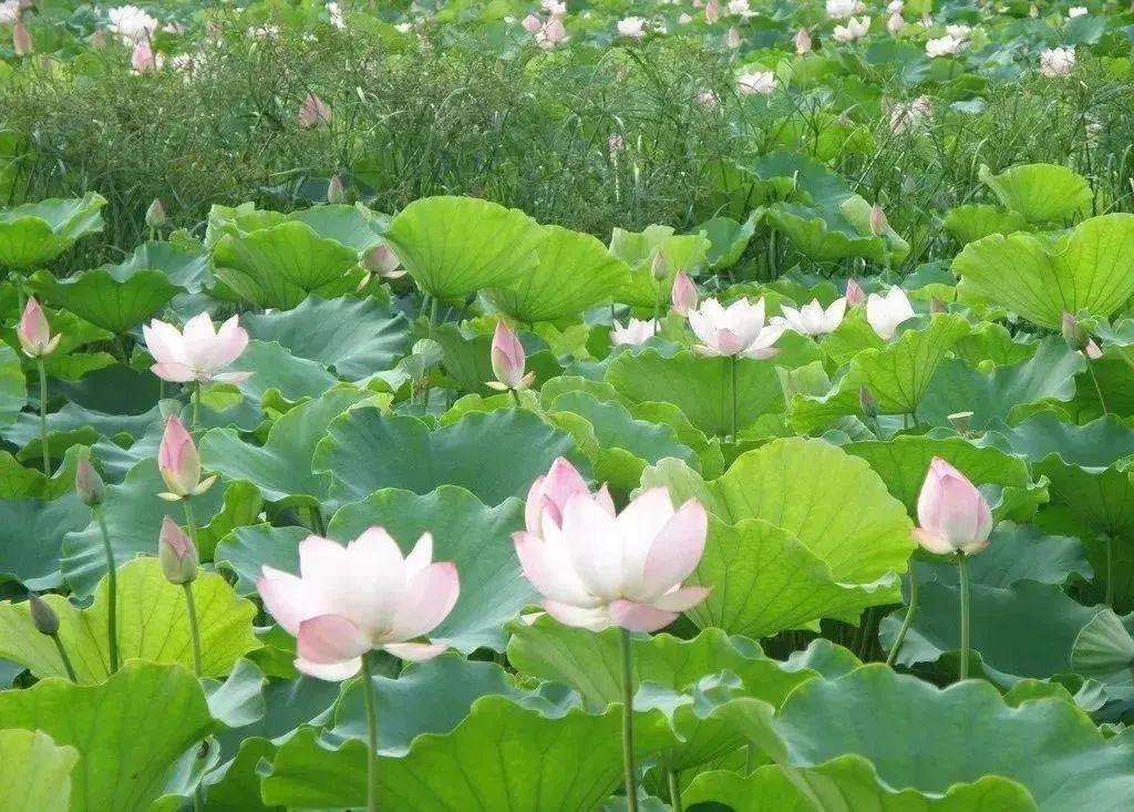 紅白相間、粉白相間的荷花,如同一幅幅精美的水彩畫美不勝收,每一朵荷花都有自己獨(dú)特的韻味,競相開放,展示著夏日的美麗。
