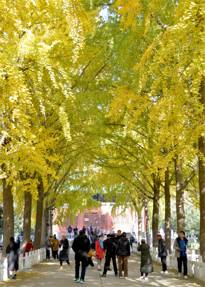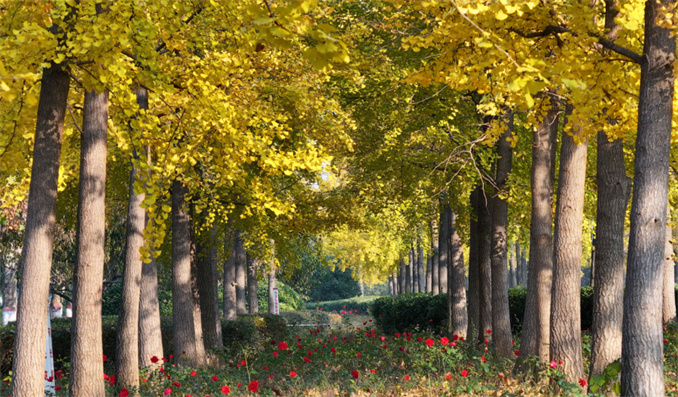 鄭州人民公園。鄭州人民公園南門(mén)的銀杏林,類(lèi)似于北京的地壇公園,每到初冬,人民公園的銀杏樹(shù)美得讓人移不開(kāi)眼。從南門(mén)入園,胡公祠前有兩排高大的銀杏林,長(zhǎng)約60米的銀杏大道,拍照超級(jí)出片。欣賞過(guò)銀杏大道后,往公園中心走去,黃色的法國(guó)梧桐葉和金黃的銀杏葉相互輝映,秋景美麗寧?kù)o,是賞秋的好去處!