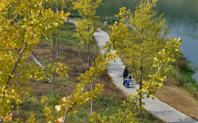 西流湖公園。從中原路到化工路,全園區(qū)域都種植有銀杏樹(shù),總量多達(dá)1260多株,樹(shù)齡在15一20年不等,觀賞效果良好。其中,化工路南、北園湖東岸,一條名為“黃金大道”的游路兩旁栽植有80多棵矮狀銀杏樹(shù),樹(shù)齡近20年,可近距離觀賞銀杏葉。