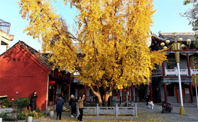 法云寺。寺內(nèi)一株樹(shù)齡1200多年的古銀杏樹(shù),為鄭州市主城區(qū)內(nèi)最古老的銀杏樹(shù),銀杏葉黃時(shí)獨(dú)木成景,且結(jié)滿(mǎn)銀杏果。