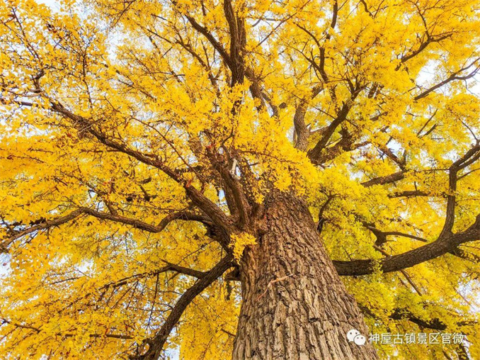秋天銀杏變成金黃色,遠遠看去格外好看。古樸的民風里還把古樹當做神靈敬奉,樹上掛有許多紅綢帶,是人們美好的祝愿。