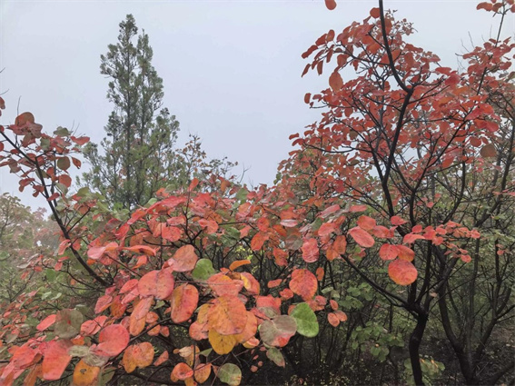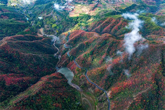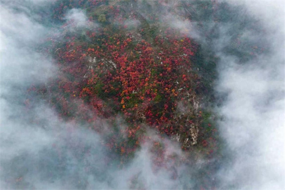 王維詩里的云臺(tái)山如今正褪去綠意,換上紅衣。登臨茱萸峰,看群山連綿在云霧中若隱若現(xiàn);漫步紅石峽,丹霞地貌與碧水清潭在紅葉點(diǎn)綴下相映成趣。十月中旬的柿子紅了,也是秋天寫給大地的情書。從十月的色彩斑斕,到十一月的紅如火焰,這里的秋色持續(xù)在線。