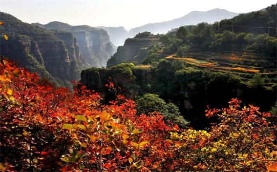 秋日登高,當(dāng)來此處。此時(shí)的安陽林州太行大峽谷是一幅徐徐展開的巨型油畫,楊樹金黃、黃櫨火紅,將巍巍太行點(diǎn)綴得五彩繽紛。行走在千米之上的太行天路,臨崖眺望,深邃的峽谷被斑斕秋色填充。秋陽不燥,秋風(fēng)正好,正是放松身心的絕佳時(shí)節(jié)。