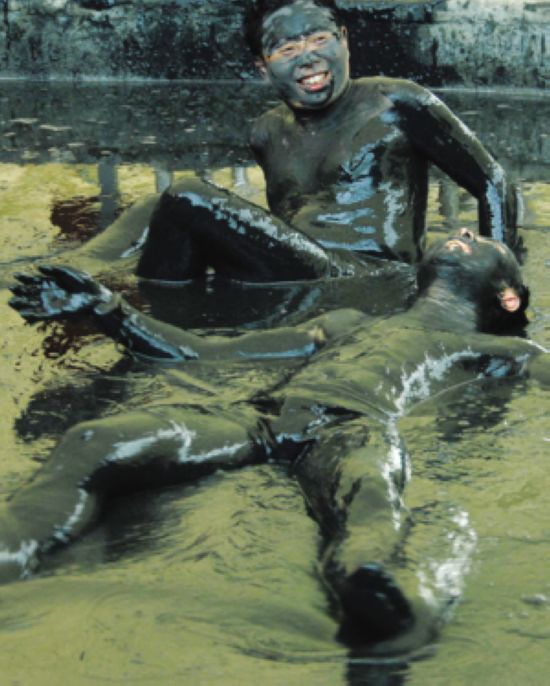 游客在四川省大英縣“死海”景區(qū)黑泥池中浸泡。在四川省大英縣“死海”景區(qū),游客將黑泥涂抹于身上,享受放松時光。