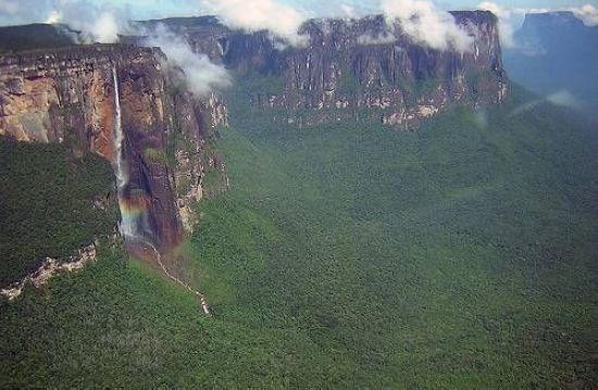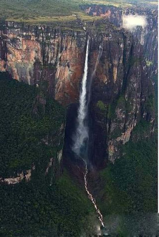 藏身于的委內(nèi)瑞拉與圭亞那的高原密林深處。安赫爾瀑布是世界上落差最大的瀑布,丘倫河水從平頂高原奧揚(yáng)特普伊山(Auyan-tepui)的陡壁直瀉而下,幾乎未觸及陡崖,落差達(dá)979.6米,大約是尼亞加拉瀑布高度的18倍。