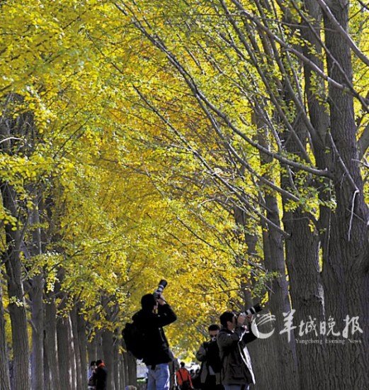 在釣魚臺國賓館的東墻外,有一條最具地標性的銀杏景觀大道,無需門票,故而是平民的天堂。那里的近千棵銀杏樹種植于上世紀50年代末,每年10月中下旬,就迎來大批游人,包括拍婚紗照的新人、攝影師、畫家等。待到深秋時節(jié),金黃的樹葉紛紛墜落,在地上鋪成厚厚的“地毯”,更是一片童話般的意境。