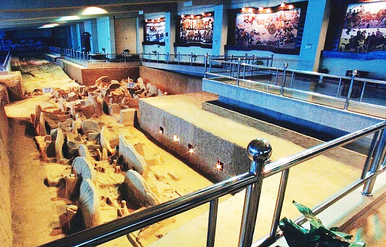 虢國(guó)車馬坑博物館占地150畝,其基本陳列《虢國(guó)墓地遺址與文物陳列》分為《虢寶擷英一一虢國(guó)墓地出土文物精華展》、《梁姬風(fēng)韻--虢國(guó)國(guó)君夫人墓出土文物展》、《車轔馬蕭--虢國(guó)地下車馬軍陣遺址群展》、《國(guó)君覓蹤--虢季墓遺址群展》四部分。這里展示的有全國(guó)最早、規(guī)模最大的地下車馬軍陣、有上古國(guó)君第一陵墓、有“中華第一鐵劍”、時(shí)代最早、形制最為完備的虢季氏綴玉面罩、七璜組玉佩等國(guó)寶重器。這里是世界郭姓的衍源地,“假途伐虢”的發(fā)生地。