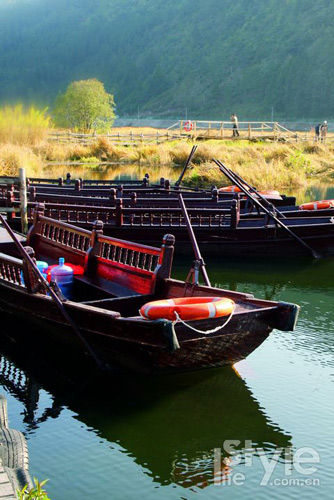 距縣城十來公里左右的北海濕地很特別,屬高原火山堰塞湖生態(tài)系統(tǒng)。我們所見到的成片成片的草塊都是漂浮在水面上。倘若你以為水很淺,草生長在水底泥上,那就錯了,實際上成片成片的水草的根須經(jīng)過千萬年的生死串結(jié)而成,厚度大約在1米,被稱為“草排”,下面水深足有十幾米。當(dāng)?shù)厝艘郧敖?jīng)常把分開的一小片草排當(dāng)船來劃,捕魚蝦。如今為了環(huán)保及安全,濕地被保護(hù)起來,草排也是分片對游人開放,人工搭起的木板平臺橋一直延伸到濕地中,供游客穿行于草地上,欣賞周圍美景。不過乘坐游船深入漂浮的草排中,穿著雨靴體驗一把“踩”草排的經(jīng)歷,卻是最讓人津津樂道的事兒。