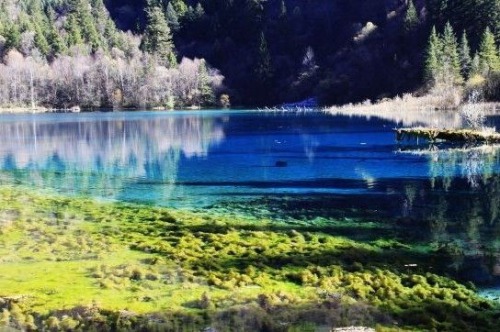 水是九寨溝的靈魂,冬季到九寨溝看雪,更要看水。因?yàn)楦缓V物質(zhì),這里的水是不結(jié)冰的,七彩池水依舊七彩。張揚(yáng)透明的水像是童話里的藍(lán)寶石,雖有雪花飄蕩其上,依舊不改風(fēng)采。七彩的水中有長(zhǎng)年不爛的枯枝,還有一種無(wú)鱗魚(yú),靜靜地凝視水面,方才能看到小小銀色的魚(yú)兒穿梭。