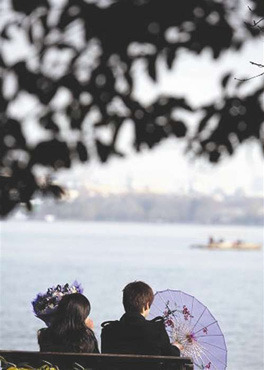說起愛情,人們自然想到西湖,秀質(zhì)天成的西子湖一直與愛情有著不解之緣,從泛舟湖上、攜手同隱的西施與范蠡,到水漫金山寺、被壓雷峰塔的白娘子,堅如磐石、韌如蒲草,纏綿不絕的情感賦予一湖碧水,于是杭州也就成了情人的天堂。
