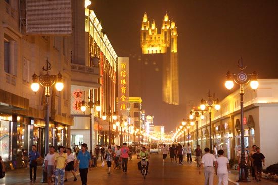 每當(dāng)入夜,這里所有的商廈華燈燦爛,人如潮水一般在街上往來(lái)穿梭。這里不僅有中外的服裝、鞋、包的名牌專門店,還有各種消費(fèi)品的名牌店、中外快餐連鎖店、小吃一條街、電影院……可謂無(wú)所不有、有求必應(yīng)。
