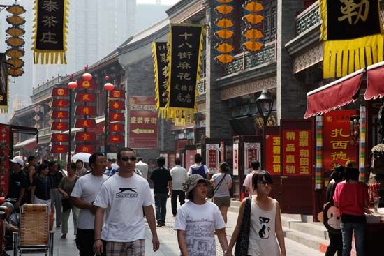專(zhuān)門(mén)為游客開(kāi)辟的采買(mǎi)天津土特產(chǎn)和文化風(fēng)物的去處,一是天后宮一帶的古文化街,二是鼓樓。天津的老居民把天后宮叫“娘娘宮”,兩邊的馬路也因此叫宮南和宮北大街。其實(shí)古文化街不古,都是近些年把老房子全拆了之后,更換的新街市。這里有“泥人張”、“楊柳青”等民間絕活兒,都是天津民間文化的頂尖風(fēng)物。但進(jìn)去這些商店,只能看、買(mǎi),不能拍照。