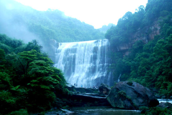來到赤水,首先要去看看這里最著名的景點———赤水大瀑布,這個景點又名“十丈洞”,原因是當(dāng)?shù)厝税哑俨挤Q為“洞”,“十丈”一點也不夸張:大瀑布高76米,寬80米,是我國丹霞地貌上最大的瀑布,也是我國長江流域上最大的瀑布。