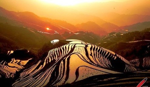 龍脊梯田位于廣西壯族自治區(qū)龍勝縣龍脊山,始建于元朝,完工于清初,其歷史和規(guī)模在世界梯田中都屬罕見,有“梯田世界之冠”的美譽(yù)。古時(shí)在這里開山造田的人們肯定不曾想到,最初只為生計(jì)用血汗和生命開墾的梯田,經(jīng)過(guò)后世的耕作、開拓,千百年后竟變成了如此嫵媚瀟灑的景觀,更成為我們的祖先改造自然的智慧和力量的見證。