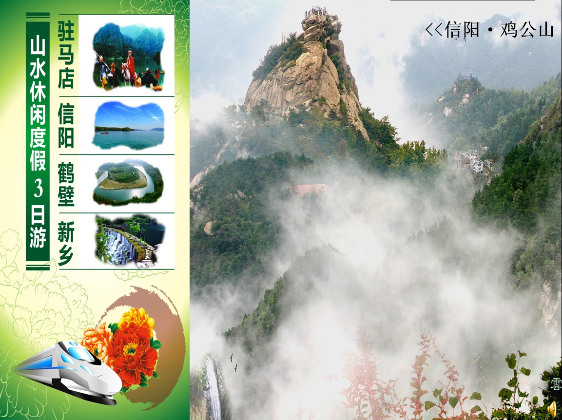 第二天:游覽薄山湖風(fēng)景區(qū),品嘗薄山湖特色松針全魚宴后,乘高鐵赴信陽,游覽避暑勝地雞公山,住信陽市; *春季還可以參觀五云山茶場,采摘、品茗信陽毛尖。