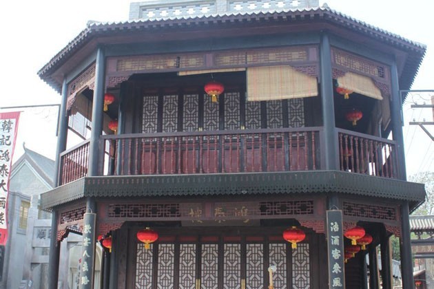 ‘三河鎮(zhèn)’街道兩邊的商鋪招牌,都是河南地方特產(chǎn)和名吃,還看到了戲樓和關(guān)帝廟,這充分展現(xiàn)了河南底蘊深厚的文化。韓記鴻泰大酒店算是三河鎮(zhèn)最有范兒的酒樓了,見客人進(jìn)門,老板走上前來,雙手抱拳,高喊:“貴客到,小二,上菜。”戲樓兩側(cè)柱子上掛著一副對聯(lián),“粉墨登場演得形形色色,彩衣飛舞做出是是非非”,《抬花轎》、《拷紅》、《花木蘭》,經(jīng)典豫劇輪番上演。進(jìn)去酒樓坐下,肚子都感覺有點饑腸轆轆了呢。