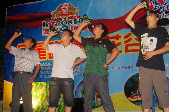 作為狂歡夜的主打活動——金星啤酒速飲比賽,更是把現場氣氛推向高潮,三輪比賽挑戰(zhàn)者絡繹不絕,經過激烈的角逐,李先生最終奪得冠軍,獎品為:金星啤酒十件+雪花谷漂流票五張!啤酒比賽不但讓廣大市民沖刺極限挑戰(zhàn)自我,而且在有趣的游戲互動中,給大家乏味的夜生活注入了新鮮的活力,深受市民的喜愛。