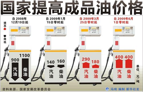 國(guó)家發(fā)展和改革委員會(huì)31日宣布,決定自6月1日零時(shí)起將汽、柴油價(jià)格每噸分別提高400元。