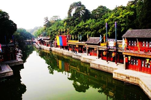 蘇州街是后湖兩岸仿江南水鎮(zhèn)而建的買賣街。清漪園時(shí)期岸上有各式店鋪,如玉器古玩店、綢緞店、點(diǎn)心鋪、茶樓、金銀首飾樓等。店鋪中的店員都是太監(jiān)、宮女妝扮。皇帝游幸時(shí)開始“營(yíng)業(yè)”。后湖岸邊的數(shù)十處店鋪1860年被列強(qiáng)焚毀,F(xiàn)在的景觀為1986年重修。