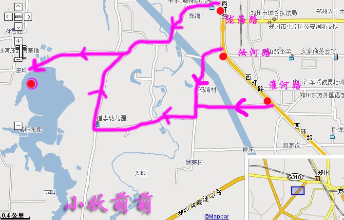 下面就是鄭州常莊水庫的線路圖!只要能坐車到西環(huán)于隴海路、女河路、淮河路的交叉口就可以啦!到西環(huán)路邊你會看到有很多的小摩托三輪車,找個師傅好好商量一下,談?wù)剝r錢不會太貴!當然你也可以騎車去!