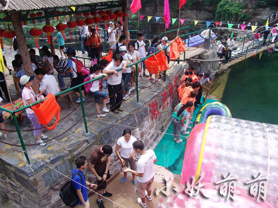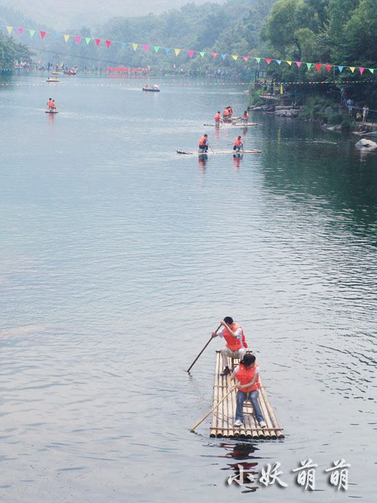 這里的水上娛樂設(shè)施挺齊全的!有竹筏、橡皮船、滑索、吊橋等。