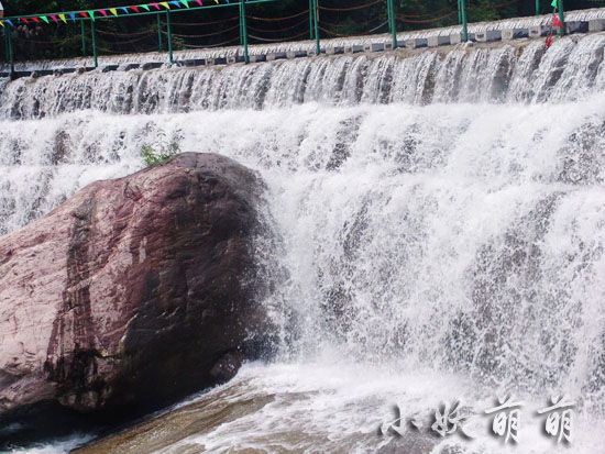 看著小型瀑布的水流