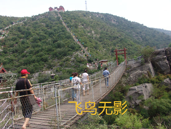 長長的天橋,一個游客惡作劇的故意晃動,嚇得幾個女士失聲尖叫。哈哈,掉不下去哩!