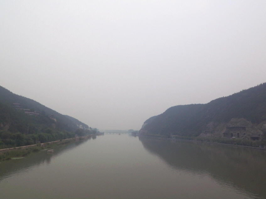 在伊河對岸看西山石窟、盧舍那大佛非常壯觀,上午早點來對岸,陽光照在西山石窟一定會更加壯觀。把DC剩下的一點點電池拍了幾個照片。伊水河畔,龍門石窟。